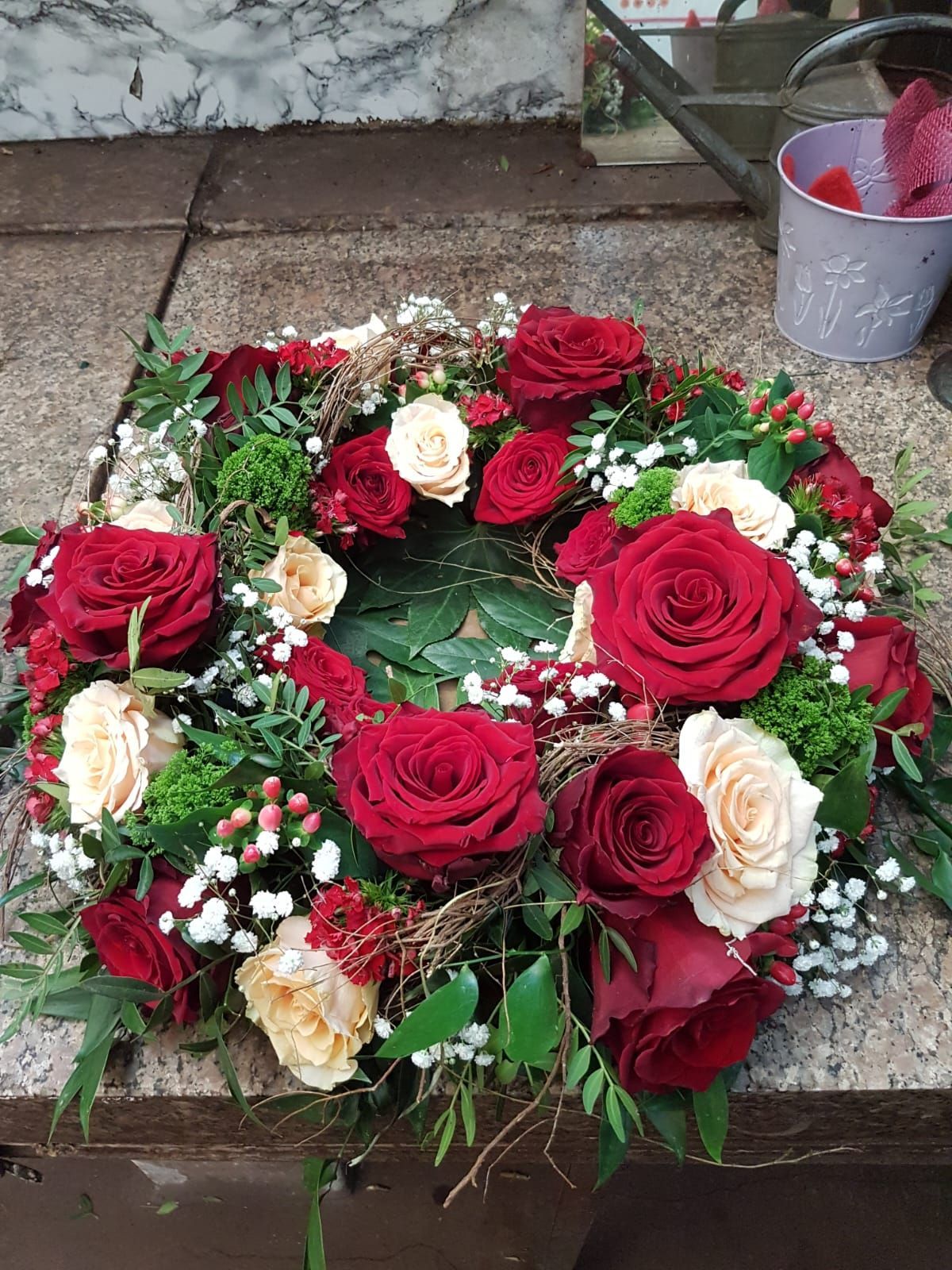 Lieferung von Trauerbinderei und Schalen